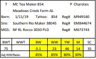 Charolais Born: 1/11/19 Tattoo: 854 Reg# M949540