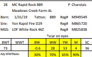 Charolais Born: 1/31/19 Tattoo: 889 Reg# M949549