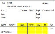 Angus Born: Tattoo: 9F02 Reg# Commercial