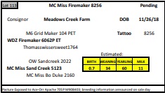 Pending 11/26/18 Pasture Exposed to Ace-Orr Apache 705P M908403; breeding information announced on sale day
