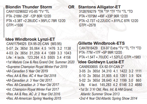 TERMS: 35% Down; Balance due @ 4 Months Lynzi just named "Quebec Cow of the Year". 7 pregnancies from mixed flush using conventional Thunderstorm and Alligator. Guaranteed 2 females to pick from