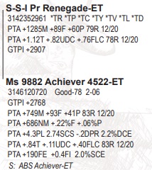 PTA +224FE +1.2FI 1.7%SCE +948CM$