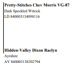 LD 840003212245645 W-C Born 01/01/2020 Dark Speckled Witrick Eartag #764 Exposed to Bull: Pretty-Stitches Cosmo General-Red