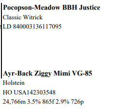 LD USA172502196 Born 10/23/2018 Dark Sided Witrick VVEVV May test 66lbs 3.3%f 3.1%p Fresh: 11/27/2020