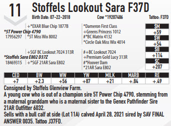 Birth Date: 07-22-2018 Cow *19207486 Tattoo: F37D Consigned by Stoffels Glenview Farm.