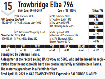 Birth Date: 09-03-2017 Cow +*19151094 Tattoo: 796 Consigned by Bateman Farms.