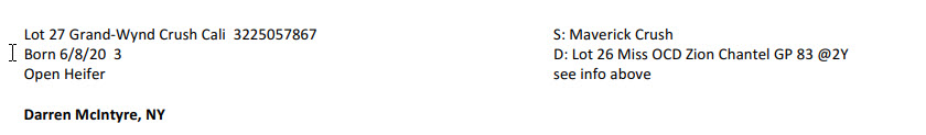Born 8/3/21 Sire: Col DG Crushtime-ET
