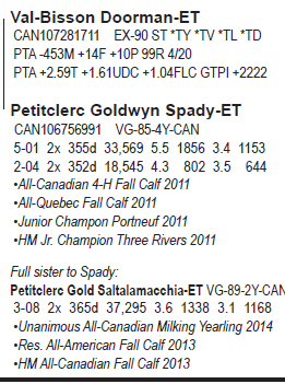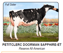 • (6) #1 Conventional embryos from sexed semen Export eligible • Location: Ferme Petitclerc Full sister to embryos: Petitclerc Doorman Sapphire-ET •HHM All-American Jr. 2 Year Old 2019 •1st Jr. 2 Year Old Midwest Spring National 2019 •2nd Jr. 2 Year Old International Show 2019 •Res. All-American Spring Yearling 2018