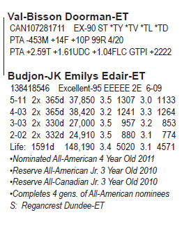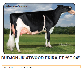 • (5) #1 IVF female embryos Export eligible • Location: Trans Ova, MD Maternal sisters to embryos: Budjon-JK Atwood Ekira-ET EX-94 2E •1st 5 Yr Old & Res. Gr. Mideast Spring Nat’l 2017 Budjon-JK Atwd Eware-ETS EX-94 •Res. Int. Champion Mideast Fall National 2015