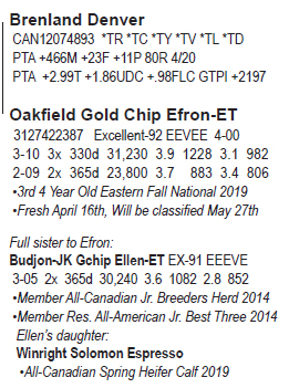 • (5) #1 IVF female embryos Domestic only • Location: Trans Ova, MD Maternal sisters to Efron: Budjon-JK Atwood Ekira-ET EX-94 2E •1st 5 Yr Old & Res. Gr. Mideast Spring Nat’l 2017 •1st 5 Yr Old & Res. Gr. Mideast Summer Nat’l 2017 Budjon-JK Atwd Eware-ETS EX-94 •Res. Int. Champion Mideast Fall National 2015 •Res. Int. Champion WI Championship Sh. 2015